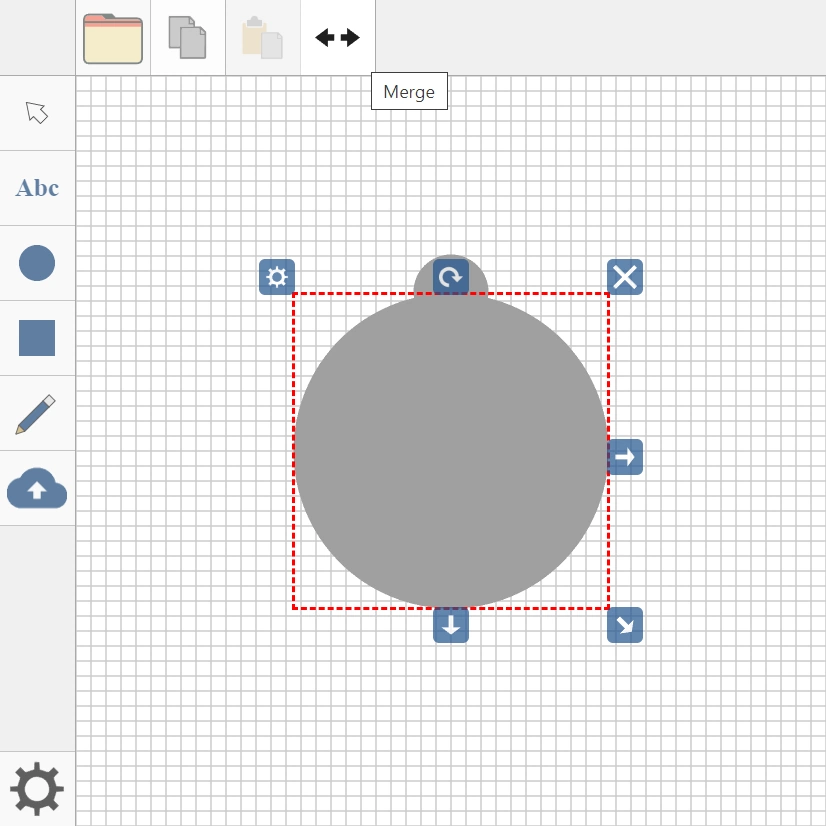 Miután a két kört hozzáadtuk a vászonhoz, itt az ideje, hogy összekapcsoljuk őket az Egyesítés paranccsal. Ha a nagyobb kört kiválasztottuk, kattintsunk az Egyesítés gombra, majd jelöljük ki a második, kisebb kört a kettő összekapcsolásához. Vegye figyelembe, hogy az egyesített körök összevonása után általános alakzatokká alakulnak, így az egyes körtulajdonságok, például a sugár nem szerkeszthetők.